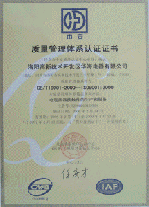 公司于2005年通過ISO9001:2000質(zhì)量體系認證